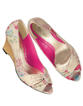 かわいい花柄のウエッジパンプス、アンティーク調パンプス